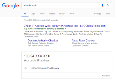 Untuk mengetahui IP Public kalian masing-masing tidak perlu repot-repot karena kita dapat menggunakan sedikit bantuan Google, yaitu dengan cara mengetikan "what is my ip" pada search bar Google.Kemudian kalian dapat trackingnya menggunakan command grep seperti di bawah ini: